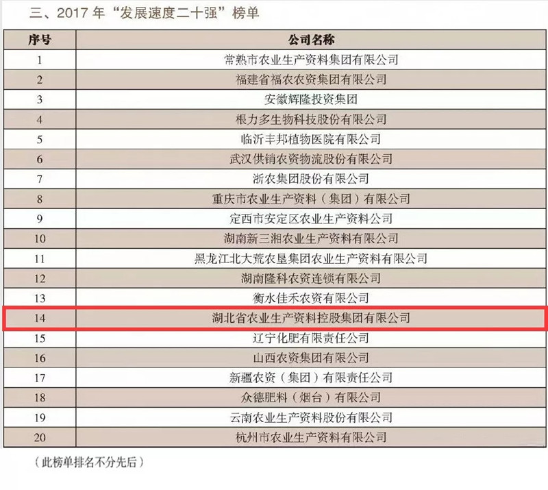2017年,在產(chǎn)能需求不平衡、優(yōu)惠政策變動(dòng)、產(chǎn)品價(jià)格低迷、運(yùn)營(yíng)成本上漲、同質(zhì)化競(jìng)爭(zhēng)嚴(yán)重的市場(chǎng)環(huán)境下,湖北農(nóng)資控股集團(tuán)主動(dòng)適應(yīng)市場(chǎng)變化、加快推進(jìn)轉(zhuǎn)型升級(jí),實(shí)現(xiàn)了公司穩(wěn)健經(jīng)營(yíng)。此次榜單的發(fā)布,旨在引導(dǎo)和激勵(lì)中國(guó)農(nóng)資流通企業(yè)做優(yōu)做強(qiáng),推動(dòng)企業(yè)優(yōu)化和協(xié)調(diào)發(fā)展。