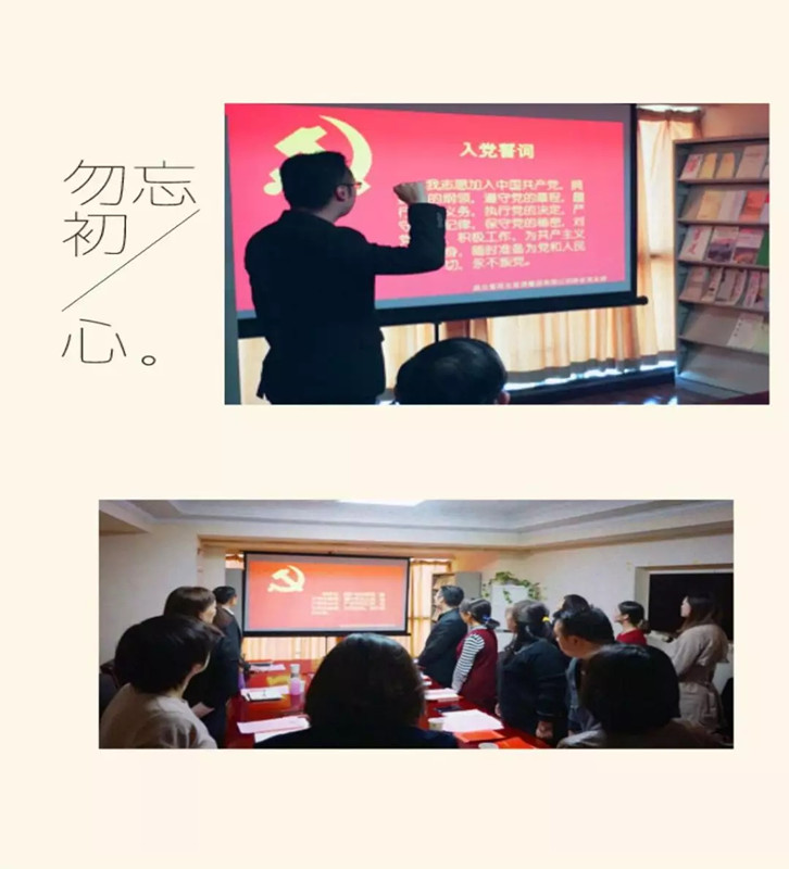 在國歌聲中,本次主題活動正式開始。為了增強黨員的身份意識,本次黨日活動對新吸納的4名預(yù)備黨員和1名預(yù)備轉(zhuǎn)正的黨員舉行了戴黨徽儀式并面對黨旗宣誓。全體黨員集體誦讀《黨章》第七章節(jié)“黨的紀律”,聆聽集團公司黨總支委員張光榮同志講授題為《加強文化自信,做堅定的馬克思主義無神論者》,還集中學習《共產(chǎn)黨員絕不能信仰宗教》及《加強和改進意識形態(tài)工作》的相關(guān)論述,現(xiàn)場繳納本月黨費。