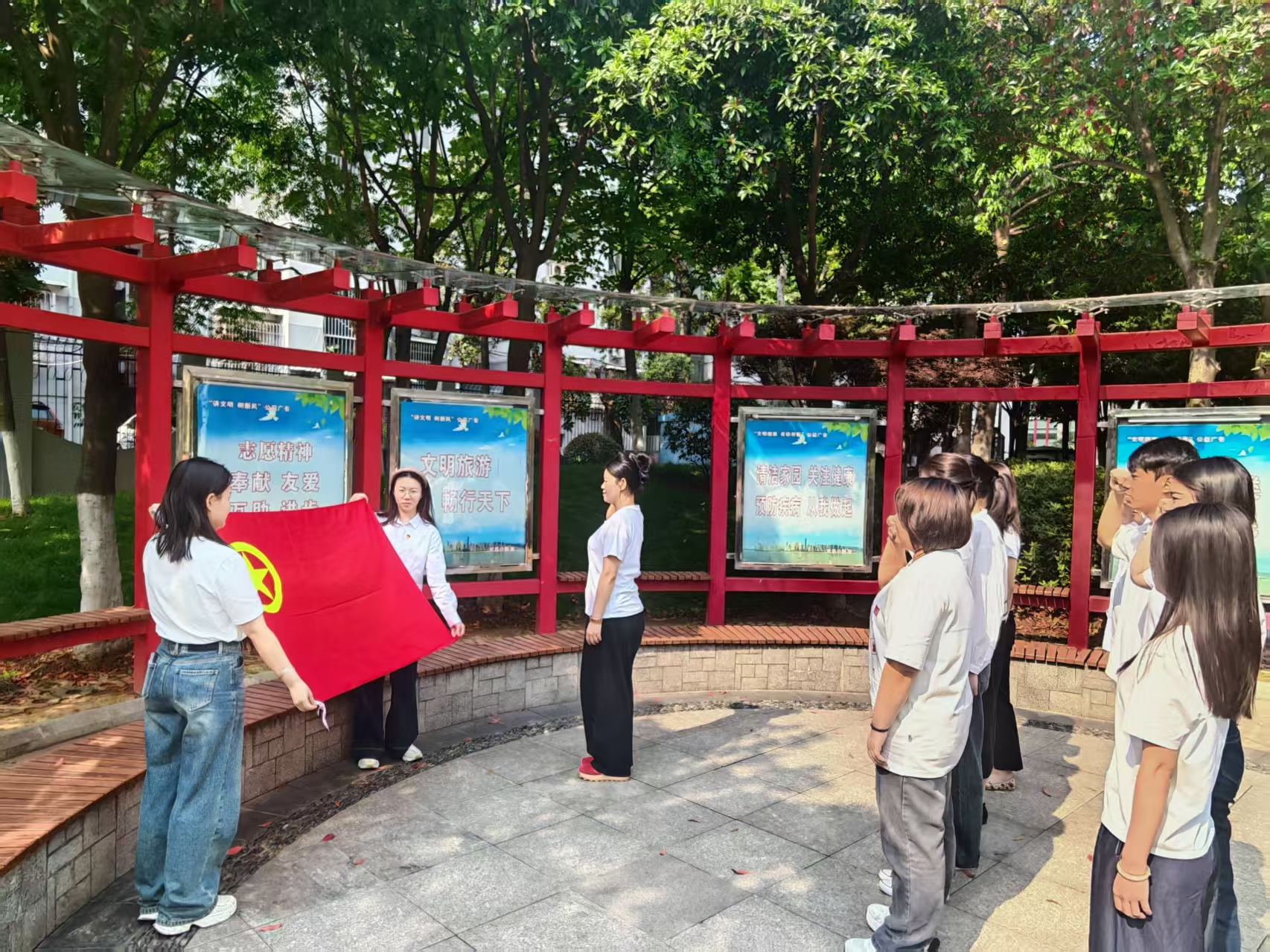 活動(dòng)伊始,青年團(tuán)員們來到廉政文化長廊,在團(tuán)旗下重溫入團(tuán)誓詞,鏗鏘有力的誓詞回蕩在每一位青年心中,堅(jiān)定了他們?nèi)雸F(tuán)的決心和信念,以此鞭策和激勵(lì)自己。